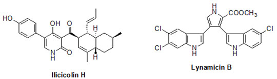 (1)具有潜在生物活性的天然产物的结构修饰与生物活性研究。主要集中在4-羟基-2-吡啶酮类天然生物碱冬青生菌素H(Ilicicolin H)和双吲哚吡咯类天然生物碱莱那霉素B(Lynamicin B)等的结构优化以及抗菌、抗真菌和抗肿瘤等生物活性研究。